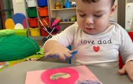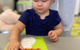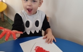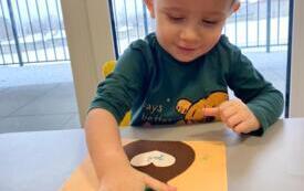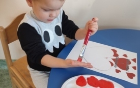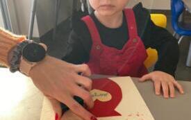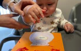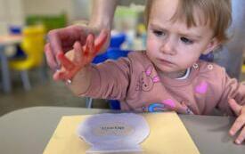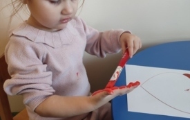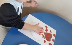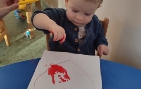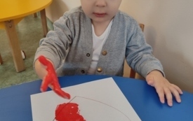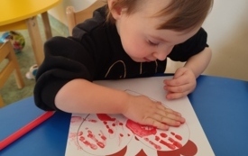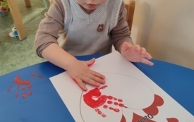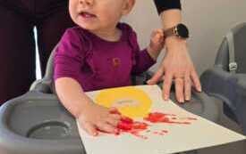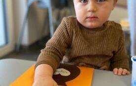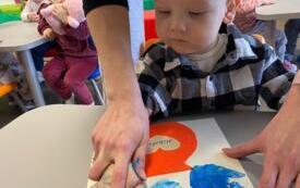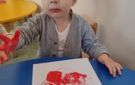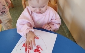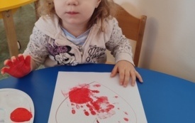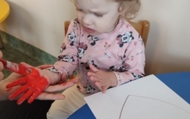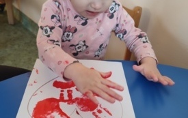 Podczas zajęć plastycznych maluchy wykonywały niezwykłe prace – rysunki z odbiciem własnej dłoni. Dzieci z radością malowały rączki farbami i odbijały je na kartkach, tworząc pełne uroku pamiątki. Każda praca była jedyna w swoim rodzaju i niosła ze sobą osobisty ślad dziecka, co czyniło ją jeszcze bardziej wyjątkową.