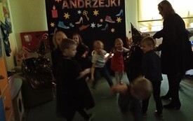 29 listopada przedszkolaki z grupy 0b przyszły na zajęcia w strojach czarodziejów i wróżek oraz przeniosły się w magiczny świat wróżb i zabaw andrzejkowych. Dzieci mogły poznać swoją przyszłość. Wiedziały jednak, że wróżb nie należy traktować zbyt dosłownie, ale miały nadzieję, że przynajmniej niektóre się spełnią. Wiele emocji towarzyszyło dzieciom szczególnie podczas wróżby dotyczącej ilości prezentów od Mikołaja i wyboru imienia przyszłego męża lub żony. Wszystkie wróżby przeplatane były pląsami i tańcami przy muzyce.