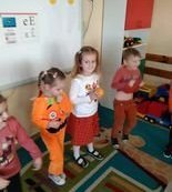Następnie przystąpiliśmy do dyniowych zabaw: klasyfikowania dyń wg wielkości, koloru i kształtu, szeregowanie od największej dyni do najmniejszej.