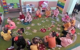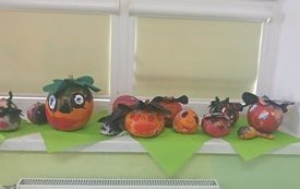 Dzieci poznały wielką różnorodność dyń i wzbogaciły wiedzę na ich temat. Dowiedziały się, że dynia jest bardzo zdrowym warzywem i, że można z niej przygotować wiele dań tj.: pieczywo, zupę, dżem, ciasto, babeczki, przetwory i soki.