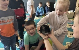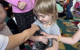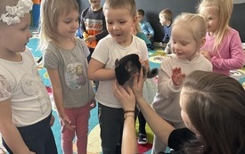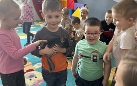 Puchate, szare, malutkie, mięciutkie to mowa o bardzo przyjaznych stworzeniach. W tym tygodniu 20.03.2023r. odwiedziły nas kochane szynszyle – Frania i Kira. I to one skradły serca naszych dzieciaków. Dzięki Pani Katarzynie Skowrońskiej mamie naszego przedszkolaka - Kacperka poznawaliśmy tajniki hodowli tych stworzeń. Pani Katarzyna jest hodowcą tych ciekawych gryzoni. Dowiadywaliśmy się, jakie są ich naturalne warunki życia. Ku zaskoczeniu wszystkich okazało się ,że czyszczą swoje futerko „kąpiąc” się w piasku a nie w wodzie.