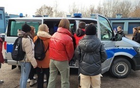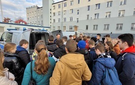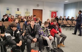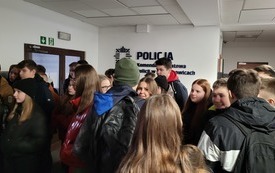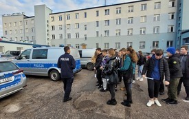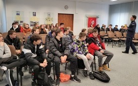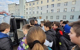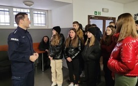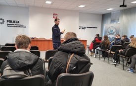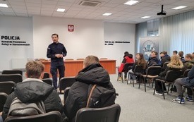 W piątek 9 grudnia uczniowie klasy VII i VIII wybrali się z wizytą do Komendy Powiatowej Policji w Starachowicach. W ramach ścieżki doradztwa zawodowego zapoznali się z pracą policjanta „od kuchni”. Podczas rozmowy z mł. asp. Pawłem Kusiakiem – oficerem prasowym KPP w Starachowicach, młodzież mogła się dowiedzieć jakie warunki należy spełnić chcąc wstąpić w szeregi Policji oraz co jest ważne w codziennej służbie, w której oprócz chęci niesienia pomocy, niezbędna jest także empatia i duża odporność psychiczna. To niełatwa praca i nie każdy posiada do niej predyspozycje, a sama chęć wstąpienia w szeregi stróżów prawa, nie wystarczy. Dlatego właśnie każdy kandydat musi przejść szereg testów: wiedzy, sprawności i psychologiczny, a także rozmowę kwalifikacyjną,zanim będzie mógł założyć policyjny mundur. Jednak warto poświęcić kilka miesięcy aby osiągnąć zamierzony cel bez względu na to czy będą to marzenia o pracy w Policji, czy chęć podróżowania po świecie. Młodzież często zastanawia się jaką drogę edukacji wybrać po skończeniu szkoły podstawowej. Nie łatwo podjąć trafną decyzję w wielu 14, 15 lat, dlatego bezpośrednie spotkania z osobami wykonującymi dany zawód może rozwiać wątpliwości i pomóc młodym ludziom dokonać wyboru.