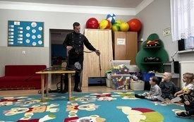 Za nami kolejne spotkanie z cyklu „Poznajemy zawody naszych Rodziców”. We wtorek 07.03.2023r. nasze przedszkole odwiedził tata Kalinki - Pan Krzysztof Nowakowski, który jest kominiarzem. Przedszkolaki miały możliwość zobaczyć kominiarza w codziennym stroju. Nasz gość opowiedział dzieciom wiele ciekawostek związanych z zawodem kominiarza. Zaprezentował narzędzia, którymi posługuje się w trakcie czyszczenia kominów. Dzieciaki dowiedziały się też kilku bardzo ważnych rzeczy: po co czyszczone są kominy, do czego służą kratki wentylacyjne, dlaczego nie wolno palić śmieci w domowych piecach. Przesądy mówią, że widząc kominiarza należy jak najszybciej złapać się za guzika, wtedy kominiarz przyniesie szczęście. Maluszki bez chwili zawahania chwytały za guziki nie tylko swoje, ale też Pana kominiarza. Kto by nie chciał mieć szczęścia w życiu.